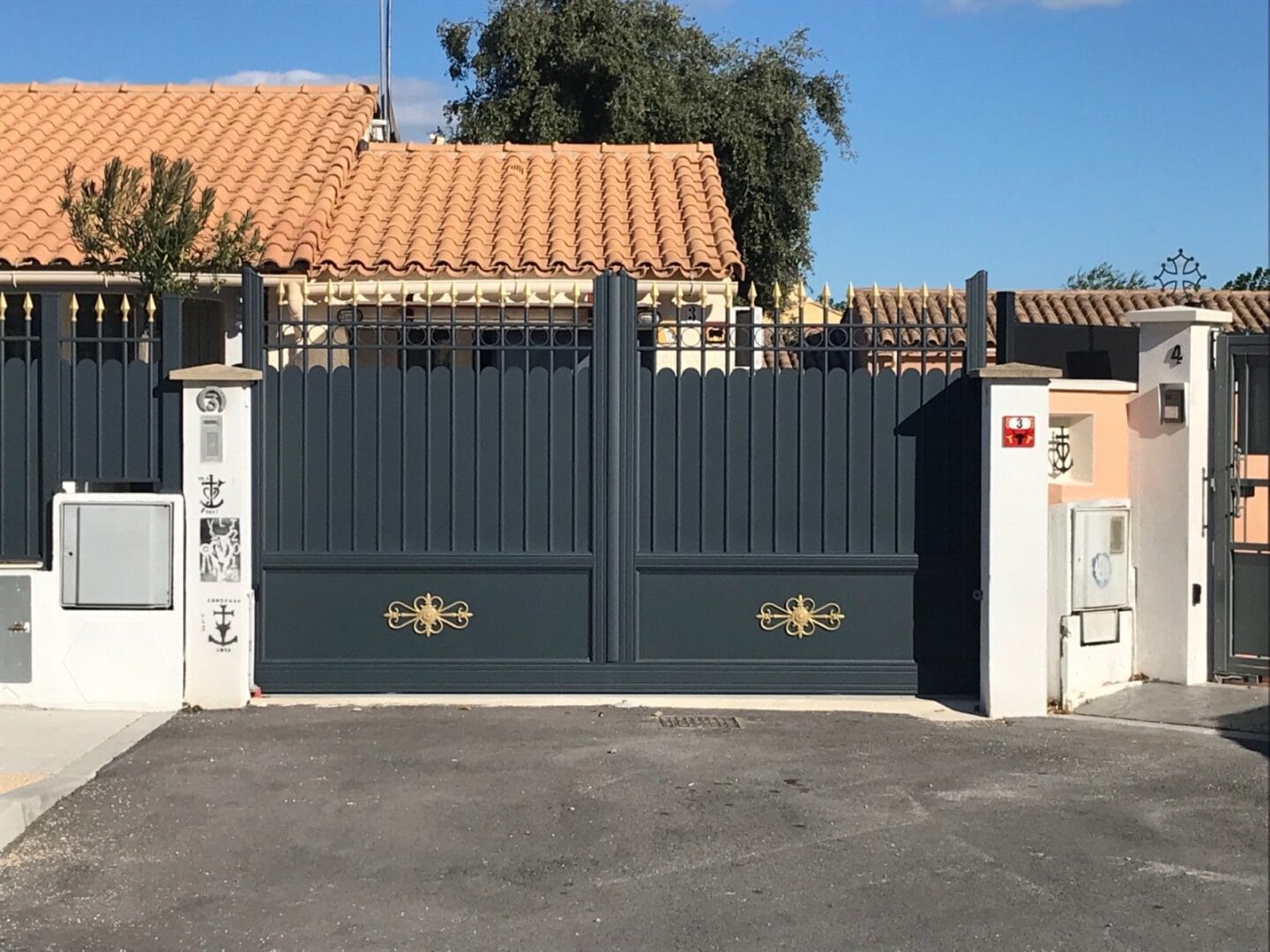 Les installateurs de Homfen ont réalisé cette prestation de changement de portail traditionnel en portail aluminium avec sa clôture en fer de lance or sur la commune de Vergèze près de Nîmes.